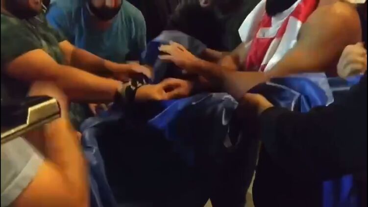 В Тбилиси разъяренные противники ЛГБТ в клочья разорвали флаг Евросоюза. Видео