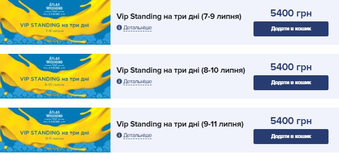 Трехдневный абонемент в VIP-зону - 5 400 гривен.