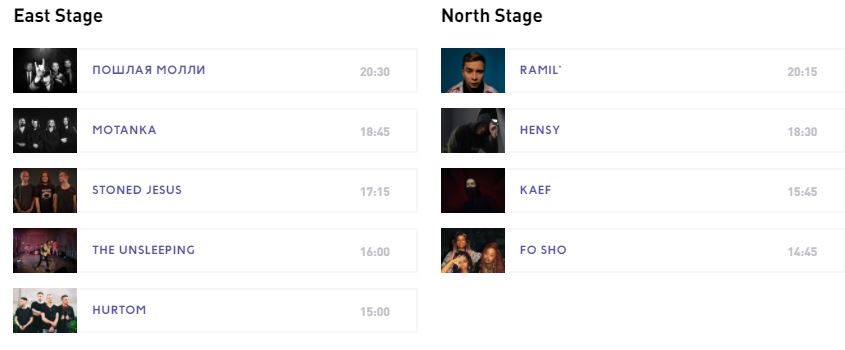 Выступят "Океан Эльзы". "ДахаБраха", Христина Соловей, "Пошлая Молли".