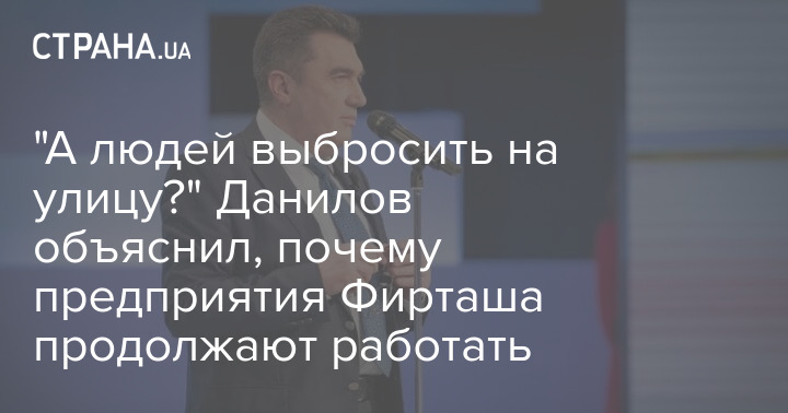 "А что с людьми делать? Их выбросить на улицу, что ли? Он сейчас не может пользоваться деньгами, которые есть на этих предприятиях. Он не может продавать активы, которые есть... Однако мы ответственны в этом. Когда министр (Данилов не уточняет о каких словах и какого министра идет речь - Ред.) говорит, почему предприятия Фирташа не закрыли - мы же не враги Украины, люди должны работать", - сказал Алексей Данилов.