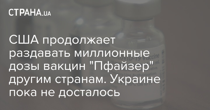 США продолжает раздавать миллионные дозы вакцин "Пфайзер" другим странам. Украине пока не досталось