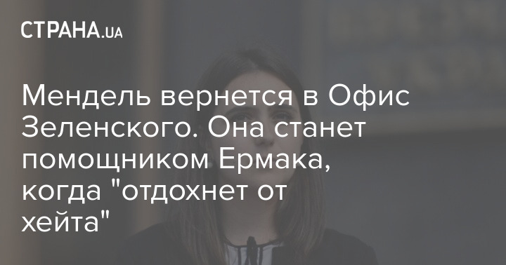 Мендель вернется в Офис Зеленского. Она станет помощником Ермака, когда "отдохнет от хейта"