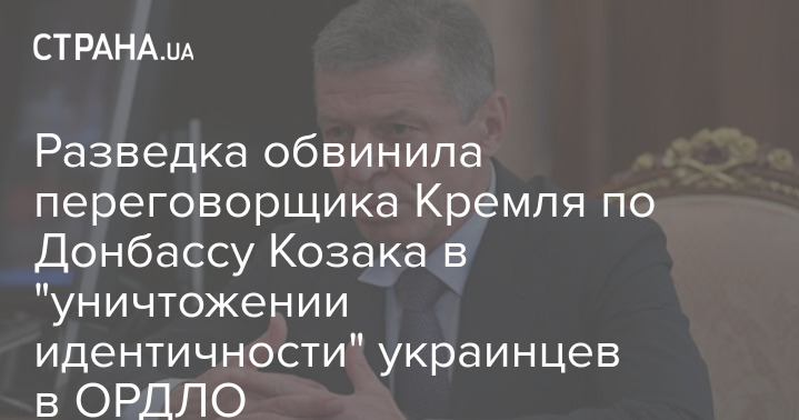В Главном управлении разведки Минобороны Украины утверждают, что заместитель главы администрации президента России и переговорщик от Кремля по Донбассу Дмитрий Козак и фонд "Русский мир" совершают действия, направленные на "полное уничтожение национальной идентичности украинского населения" на неподконтрольных Киеву территориях Донбасса.