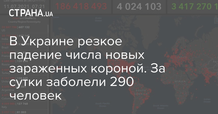 В Украине резкое падение числа новых зараженных короной. За сутки заболели 290 человек