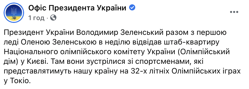 В свою очередь глава государства и его супруга сегодня посетили штаб-квартиру НОК Украины в Киеве и встретились там со спортсменами, которые будут представлять страну на 32-х летних Олимпийских играх в Токио.