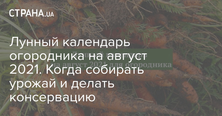 Для того, чтобы все успеть и сделать в лучшем виде, предлагаем вниманию читателей - огородников, садоводов, цветоводов - лунный посевной календарь на август 2021 году. Он в таблицах и по дням. Когда сеять и сажать, собирать урожай, ухаживать за садом, консервировать, заготавливать целебные растения и многое другое - в нашем материале.