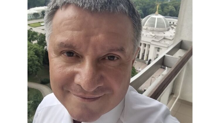 На снимке у Авакова довольное выражение лица, он одет в белую рубашку и галстук, а за его спиной видно здание Верховной Рады, где уже в четверг, 15 июля, народные депутаты будут голосовать за его отставку.