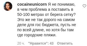 Отдыхающие тоже просят местных властей установить защитные сетки в сотне метрах от берега, которые помогут сдержать медуз. Но некоторые пользователи выступают против этого, поскольку в сетках могут запутаться сами отдыхающие.