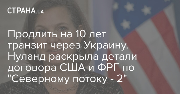 Нуланд добавила, что соглашение также предусматривает, что Вашингтон и Берлин будут стремиться снизить "как экономическую зависимость Украины от транзита российского газа, так и зависимость Украины от поставок на ее территорию газа из РФ".