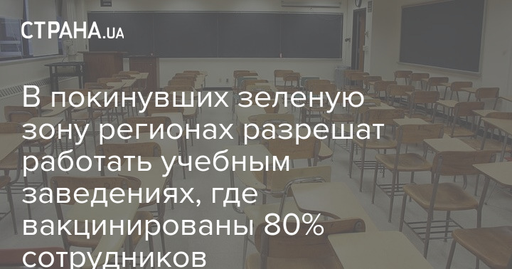 В случае, если регионы в Украине будут переходить из "зеленой" в любую другую зону карантина, там могут не закрывать учреждения образования. Однако для этого нужно, чтобы 80% их сотрудников были вакцинированы.