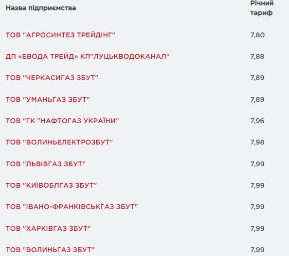 Годовой тариф в августе 2021. Данные с сайта gazpravda.com.ua