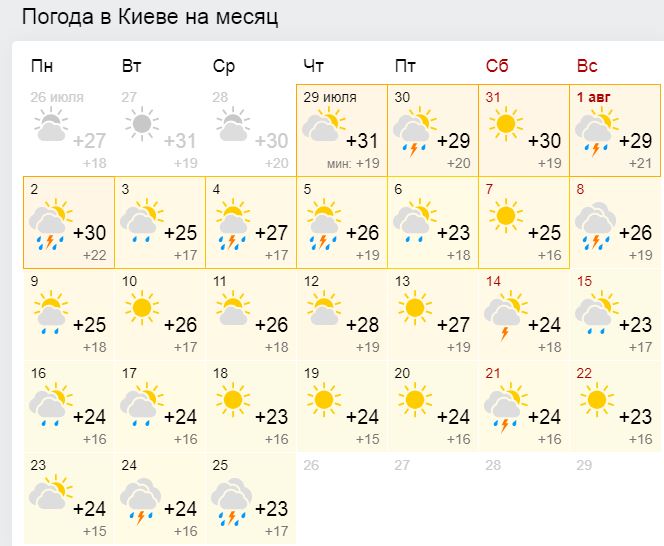 Погода на август