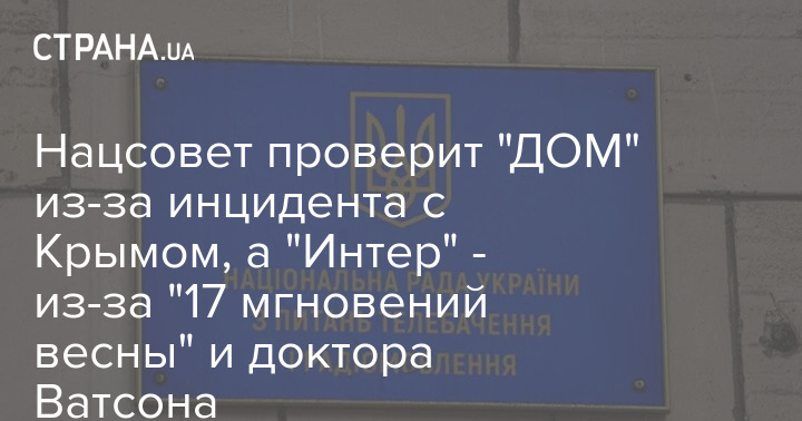 Национальный совет по вопросам телевидения и радиовещания Украины назначил две внеплановые невыездные проверки: для телеканала "ДОМ", который показал карту России вместе с Крымом и для телеканала "Интер", в эфире которого вышли фильмы с актерами из списка лиц, "угрожающих нацбезопасности Украины".