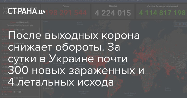 После выходных корона снижает обороты. За сутки в Украине почти 300 новых зараженных и 4 летальных исхода