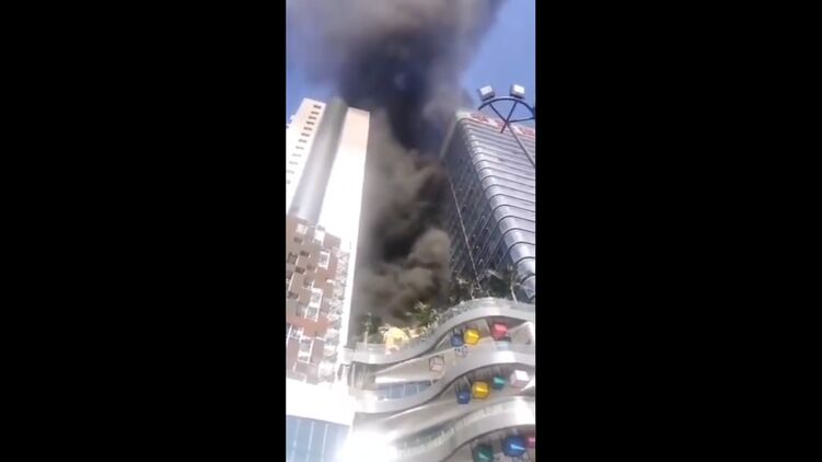 Очевидцам удалось запечатлеть масштабный пожар с огромными клубами черного дыма, который вырывался из небоскреба высоко в воздух.