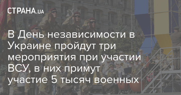 В 2021 году на День независимости Украины запланировано проведение трех мероприятий при участии Вооруженных сил Украины и сил стран-партнеров. Традиционный парад пройдет на Крещатике в Киеве, также запланирован показ вооружения и военной техники в Одессе и воздушный и водных показ вооружения на реке Днепр. Всего в торжествах поучаствуют 5 тысяч военнослужащих, 100 летательных аппаратов и четыреста единиц военной техники.
