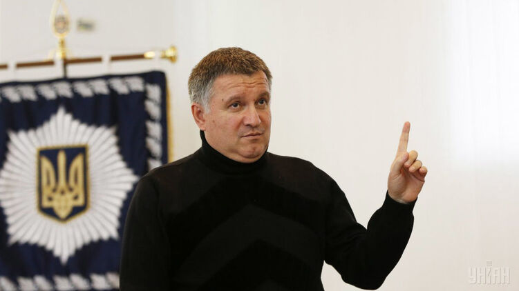 На снимке у Авакова серьезное лицо, одет в серую спортивную футболку и темные солнцезащитные очки.