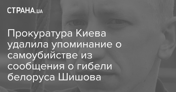 Пресс-служба Киевской городской прокуратуры сообщила, что расследование по факту гибели главы Белорусского Дома в Украине Виталия Шишова расследуется по ст.115 (умышленное убийство) с пометкой "самоубийство". Но вскоре после публикации пресс-служба отредактировала пост, убрав из квалификации пометку "самоубийство".