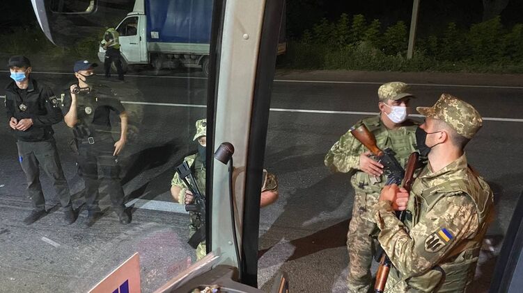 Сообщается, что СБУ проводит проверку людей в автобусе, при этом за три часа ее прошли 6 человек. Такая неспешность связана с тем, что всех фотографируют и допрашивают