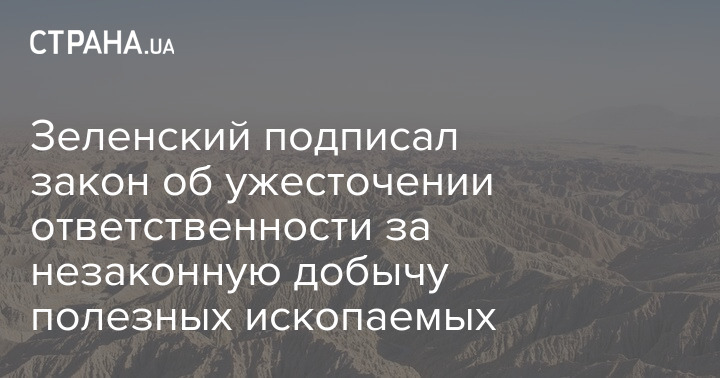 Президент Владимир Зеленский дал старт ужесточению ответственности за незаконную добычу полезных ископаемых, подписав предусматривающий такие нормы закон "О внесении изменений в некоторые законодательные акты Украины относительно ужесточения ответственности за незаконную добычу полезных ископаемых» №1685-IX". Об этом сообщается на сайте главы государства.