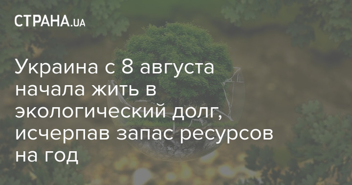 С воскресенья, 8 августа Украине начала жить "в экологический долг", то есть исчерпала запас ресурсов, которые в природе могут возобновиться за 1 год.