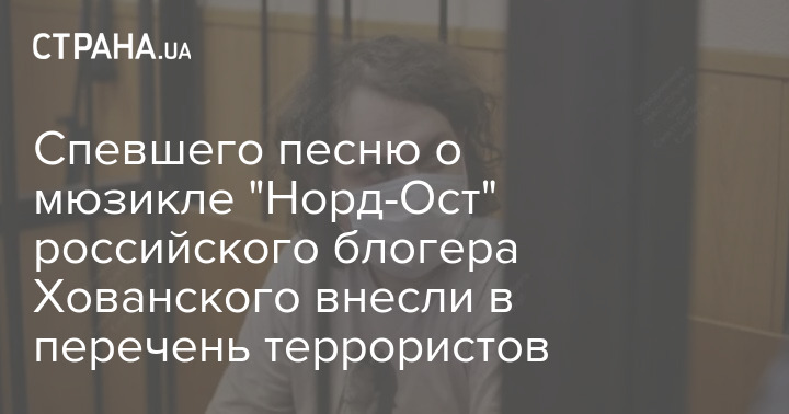 Российского блогера Юрия Хованского, которого арестовали за видео с песней о мюзикле "Норд-Ост" по подозрению в оправдании терроризма, включили в перечень террористов и экстремистов.