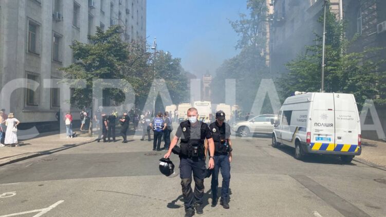 Под ОП начались столкновения между полицией и Нацкорпусом. Фото: "Страна"