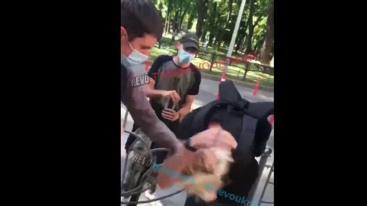Во время акции избили Александра Кужельного. Скриншот из видео