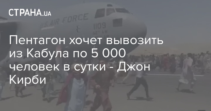 Представитель Пентагона Джон Кирби заявил, что США намерены эвакуировать из Афганистана до 5 000 человек в сутки. Об этом передает агентство "Интерфакс-Украина".