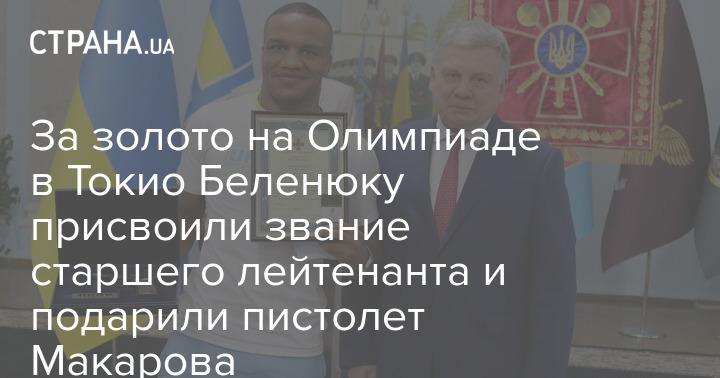 Во вторник, 17 августа, в Министерстве обороны прошло торжественное собрание армейских чемпионов и призеров Олимпиады. На нем глава ведомства Андрей Таран поздравил золотого медалиста Жана Беленюка с получением очередного воинского звания старшего лейтенанта и наградил пистолетом ПМ.