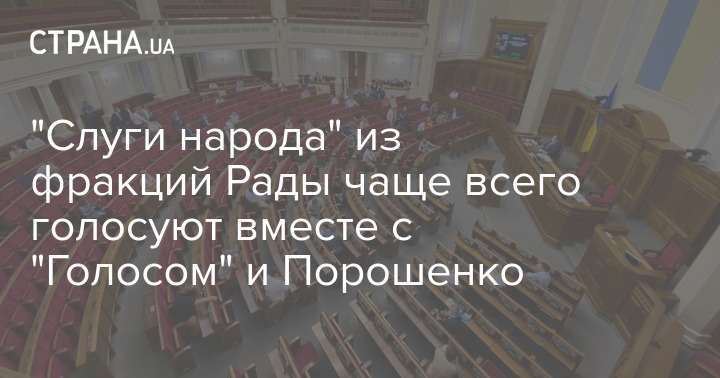 Фракция "Слуга народа" чаще всего голосует вместе с фракцией "Голос" и "Европейской солидарностью", которую возглавляет бывший президент Петр Порошенко.