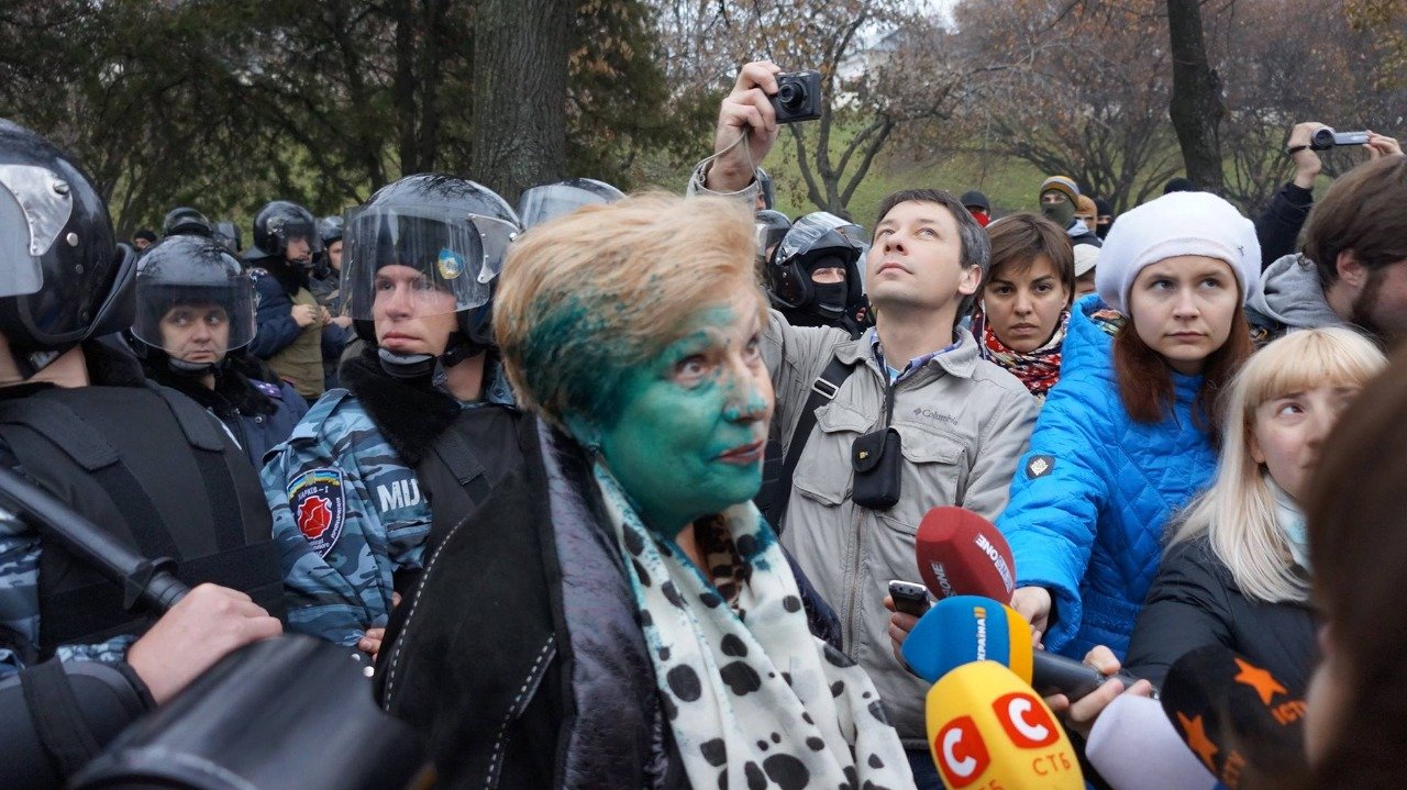 В ноябре 2014-го в Харькове облили зеленкой главу харьковского отделения Компартии Украины Аллу Александровскую. За нападение никто ответственности не понес.