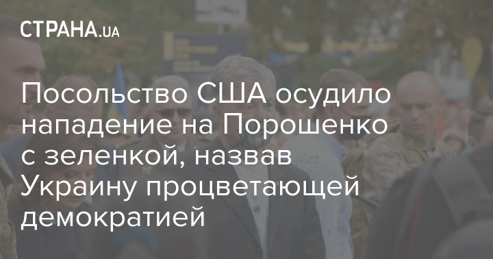 Посольство США в Киеве отреагировало на инцидент во время празднования Дня независимости 24 августа, когда экс-президента Украины Петра Порошенко облили зеленкой