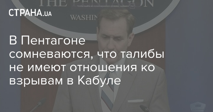 Пресс-секретарь Пентагона Джон Кирби заявил, что у властей США нет уверенности в непричастности талибов ко взрывам возле аэропорта Кабула 26 августа. Он анонсировал расследование Вашингтоном этой трагедии.