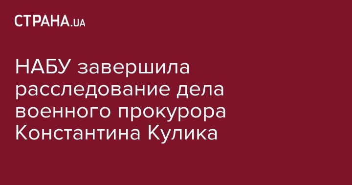 Детективы Национального антикоррупционного бюро Украины 7 октября заявили о завершении досудебного расследования по уголовному делу, открытого в отношении военного прокурора Константина Кулика. Об этом сообщает пресс-служба НАБУ.