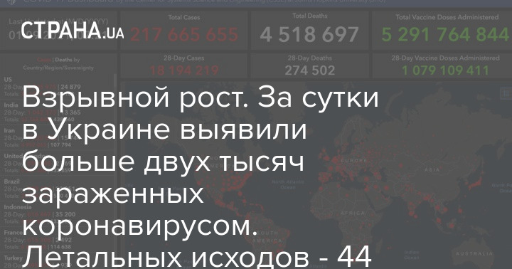 Взрывной рост. За сутки в Украине выявили больше двух тысяч зараженных коронавирусом. Летальных исходов - 44