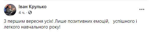Нардеп от "Батькивщины" Иван Крулько провел в школу дочерей Кристину и Анну и пожелал позитивных эмоций 1 сентября.