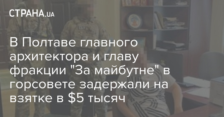 В Полтаве главного архитектора города Николая Шевелева и главу фракции горсовета "За Майбутне" Евгения Диканя задержали на взятке в 5 тысяч долларов. Эту сумму, по данным следствия, они должны были получить за организацию выдачи разрешительных документов.