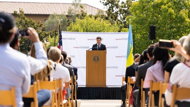Зеленский выступил перед преподавателями и экспертной средой Стэнфордского университета. Фото: president.gov.ua