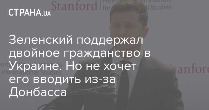 Президент Украины Владимир Зеленский поддерживает идею двойного гражданства в Украине, но в мирное время. Сейчас, по его словам, это "сложный вопрос" для Киева из-за российской паспортизации на неподконтрольном Донбассе.
