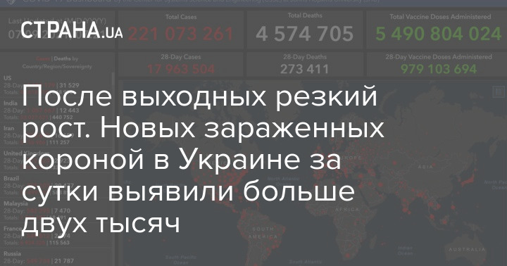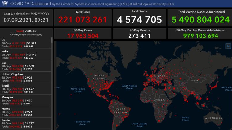 Число зараженных на Земле превысило 221 миллион, фото: arcgis.com