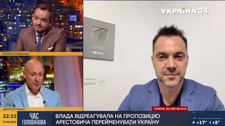 Так, Дмитрий Гордон предложил Арестовичу называть Украину Россия-1, а РФ - Россия-2.
