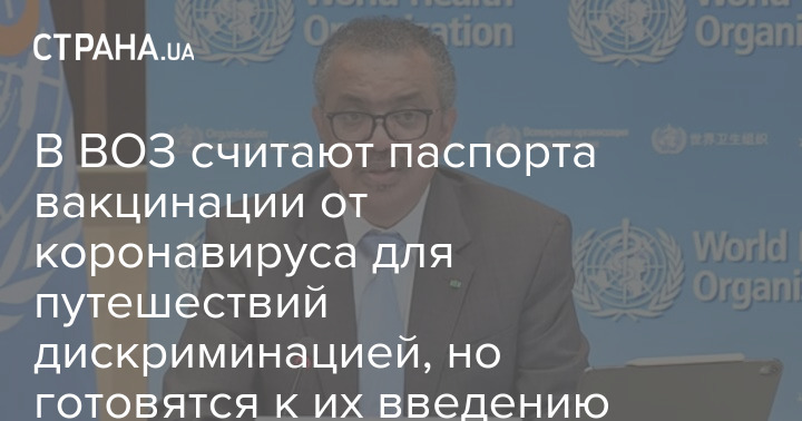 "Мы не хотим, чтобы прививочные паспорта использовались как условие для путешествий, из-за нехватки равного распределения вакцин. Это было бы средство дискриминации и не помогло бы", - сказал гендиректор ВОЗ.