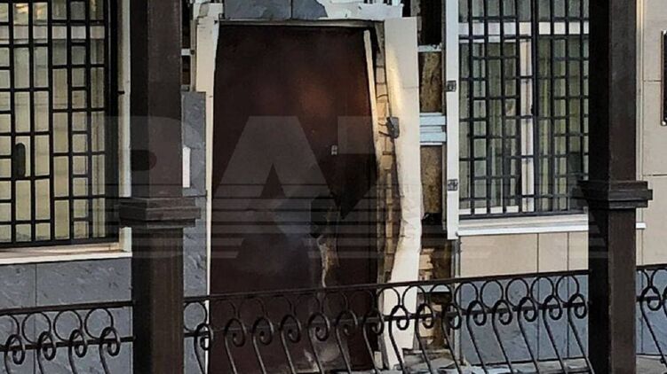 Так выглядит вход в отдел полиции в городе Лиски под Воронежем после нападения. Фото: t.me/bazabazon
