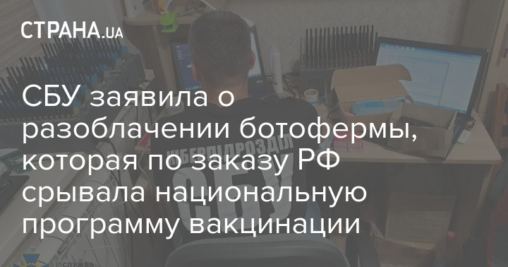 СБУ заявила о разоблачении крупной ботофермы, которая была действовала в Харьковской области и работала на Россию. В спецслужбе заявили, что кроме оправдывания агрессии и РФ и дискредитации украинской власти, она также пыталась сорвать национальную программу вакцинации.