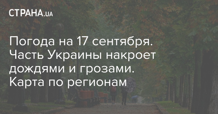 Погода на 17 сентября. Часть Украины накроет дождями и грозами. Карта по регионам