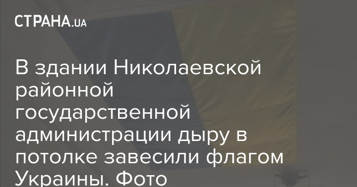 В здании Николаевской районной государственной администрации дыру в потолке завесили флагом Украины. Фото