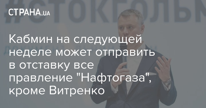 На следующей неделе украинское правительство может уволить почти всех членов правления НАК "Нафтогаз", правда, в должности планируют оставить главу правления Юрия Витренко
