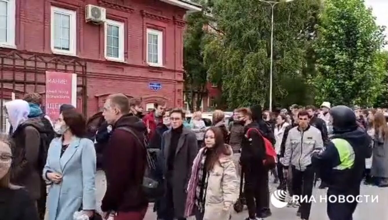 Студенты Пермского университета покидают территорию вуза. Скриншот: РИА Новости