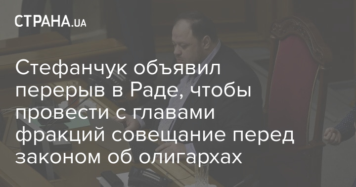 Первый заместитель председателя Верховной Рады Руслан Стефанчук в ходе заседания парламента в среду, 23 сентября, созвал руководителей фракций на совещание перед рассмотрением во втором чтении законопроекта об олигархах.